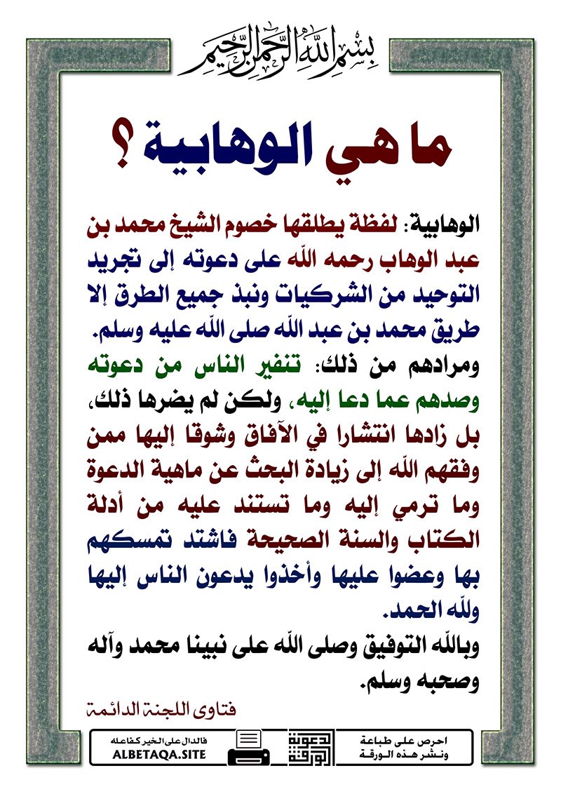 حساب يعنى بدعوة الإمام المجدد محمد بن عبدالوهاب رحمه الله — نشرٌ للتراث، بيانٌ للحق، وكشفٌ للشبهات حول الدعوة السلفية الأصيلة ، مصطلح ( الوهابية) من نبز الاعداء