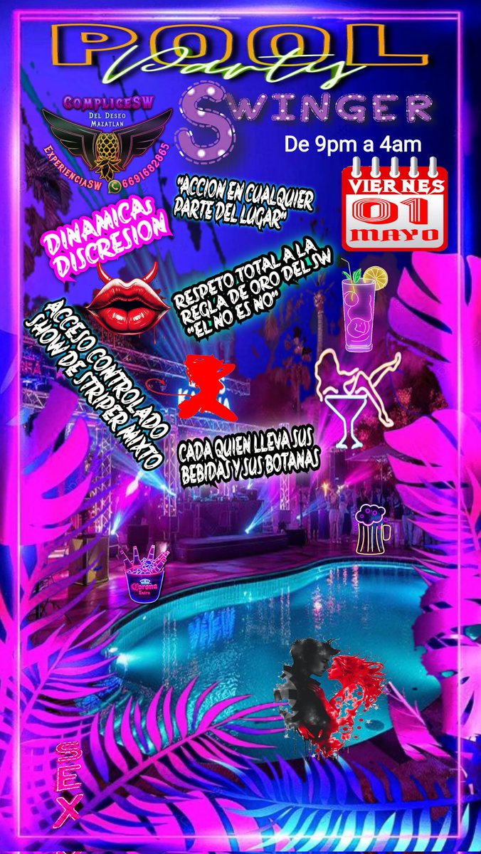 ATENCION. Viernes 1ro de Mayo..primer POOLPARTY SWINGER d este año en la Comunidad Swinger CómpliceSW Del Deseo Mazatlán. Dejamos nuestro local y nos vamos a una casa con alberca, confirma con tiempo . cover especial a los qe asistieron a las 2 pasadas reuniones. ATREVETE