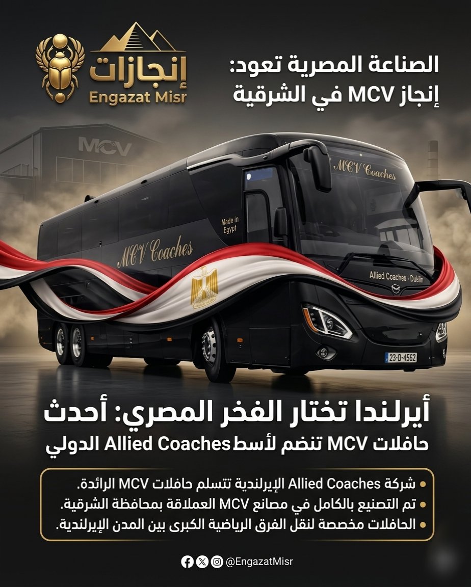 أعلنت شركة Allied Coaches الأيرلندية الرائدة في النقل الخاص، عن تدعيم أسطولها الدولي المخصص لنقل الفرق الرياضية الكبرى بحافلات مصرية الصنع بالكامل من مصانع MCV.