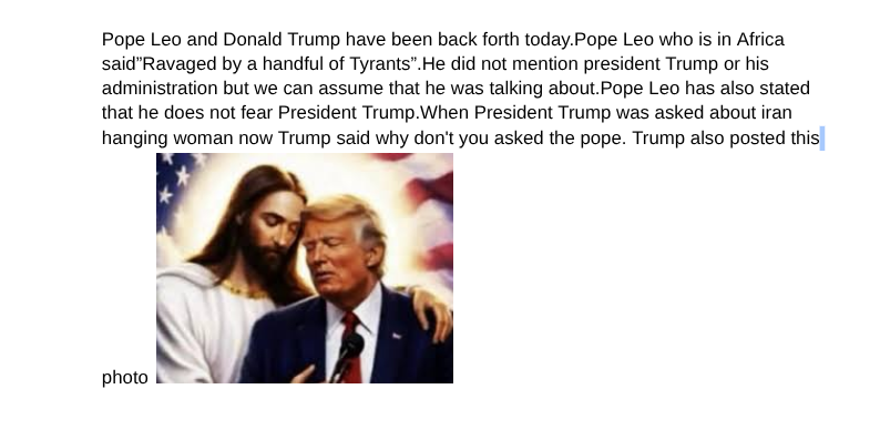 To the contrary, POTUS was heard saying a total falsehood, that Pope Leo had allegedly said that Iran should have nuclear weapons. The Pope never said that. Pope Leo is not being political, but rather scriptural, theological and spiritual in speaking out against any war.